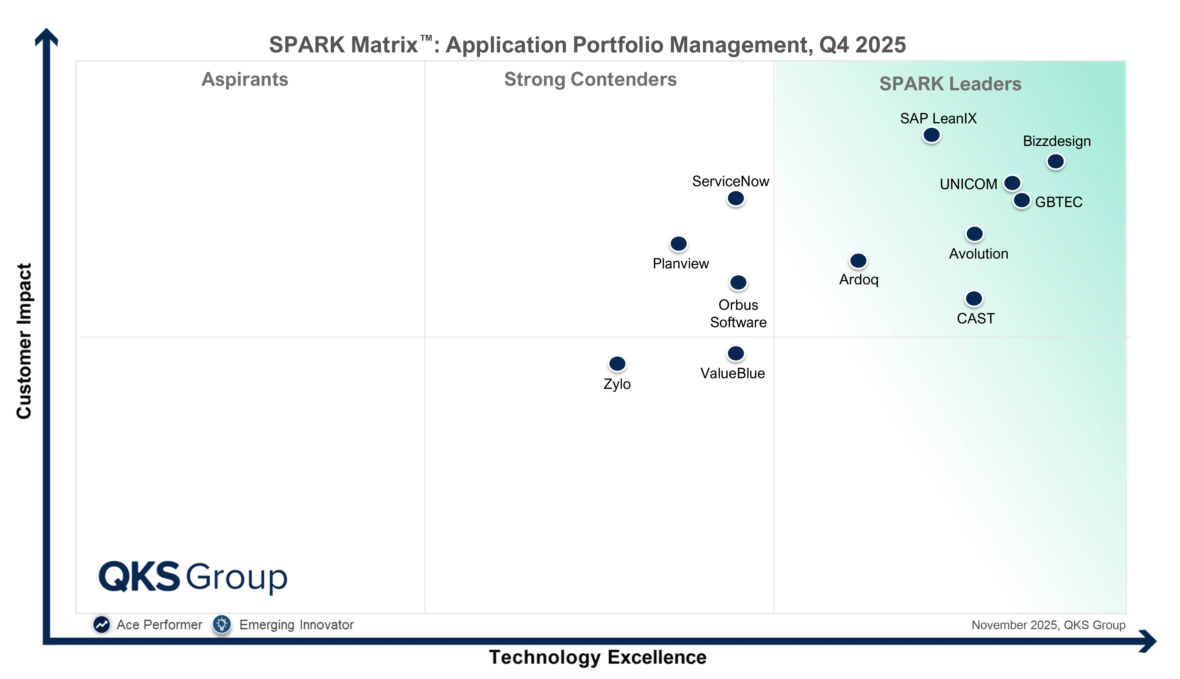 Der vollständige SPARK Matrix™: Application Portfolio Management, Q4 2025 Bericht der QKS Group kann hier heruntergeladen werden: https://www.gbtec.com/de/whitepaper/spark-matrix-application-portfolio-management-report-2025/.