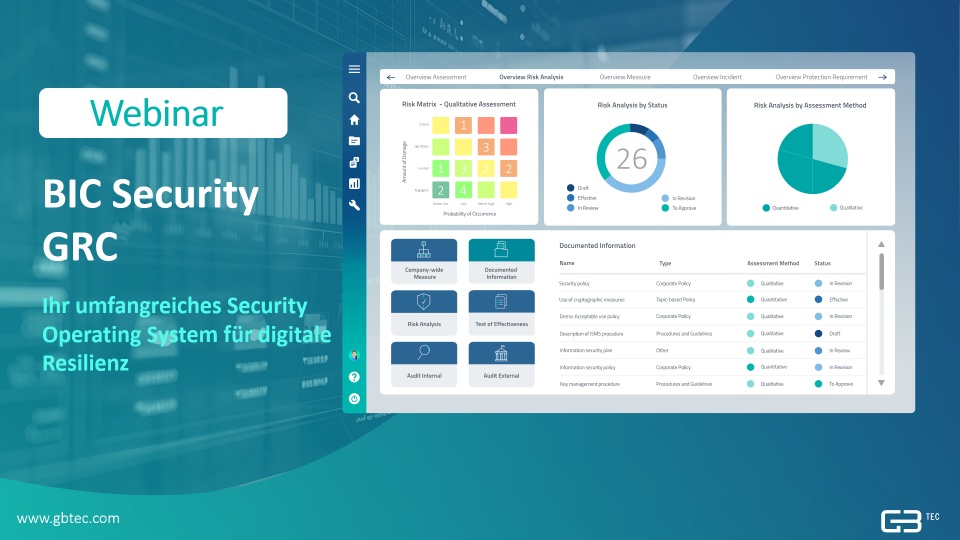 Mit unserem umfassenden Security Operating System, BIC Security GRC, decken wir alle Bereiche des Sicherheitsmanagements ab. So können Sie den gesetzlichen Anforderungen gerecht werden und die Resilienz Ihres Unternehmens nachhaltig steigern.