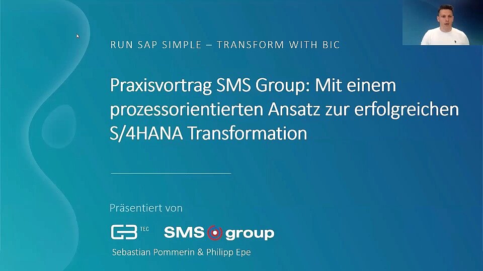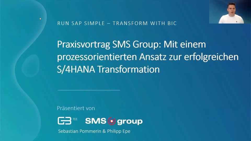 In unserem Webinar gewähren Philipp Epe von der SMS Group und Sebastian Pommerin von GBTEC exklusive Einblicke in die Best Practices und Key Learnings der S/4HANA Transformation. Die Implementierung von S/4HANA erfordert viel Ausdauer und bringt einige Herausforderungen im digitalen Zeitalter mit sich. Erfahren Sie in dem kostenfreien Webinar, wie auch Ihnen eine erfolgreiche prozessorientierte Umstellung mithilfe der bidirektionalen Schnittstelle zwischen BIC und SAP gelingt.