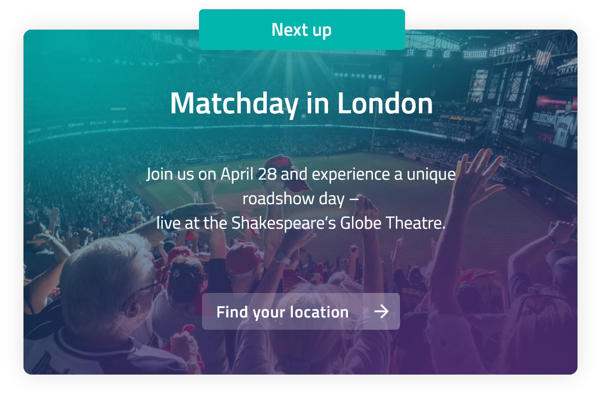 Experience future‑focused AI insights, hands‑on workshops, real‑world best practices, and valuable networking in a dynamic, team‑driven setting. We’re coming to a city near you — bringing together forward-thinking companies, decision-makers, and transformation experts for an exclusive in-person experience at some of the world’s most iconic stadiums and exceptional venues. Connect, learn, and get inspired where innovation meets real business impact. Secure your place now and join us at your preferred location before seats fill up.